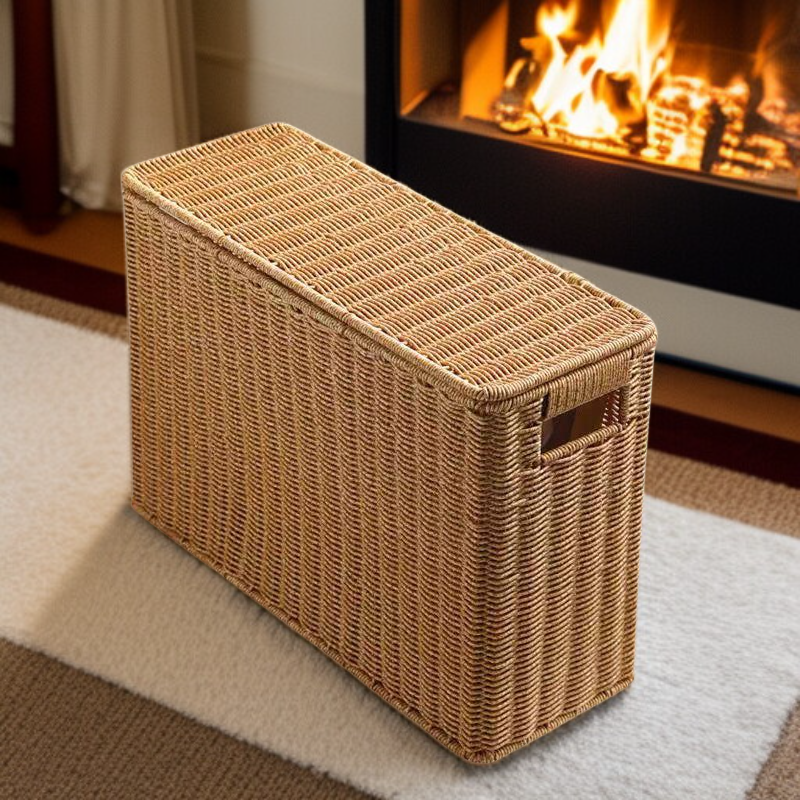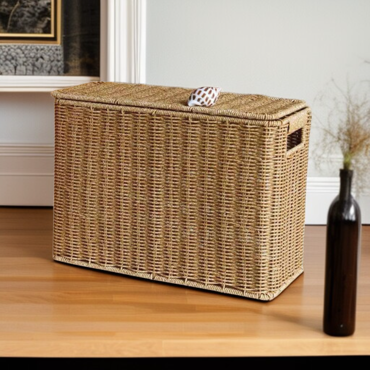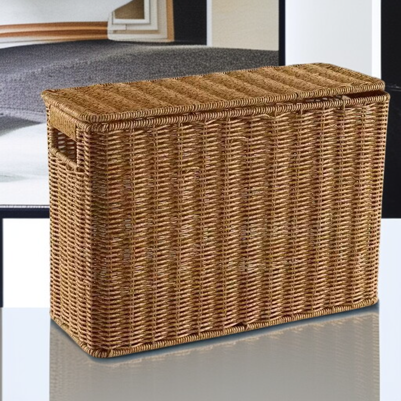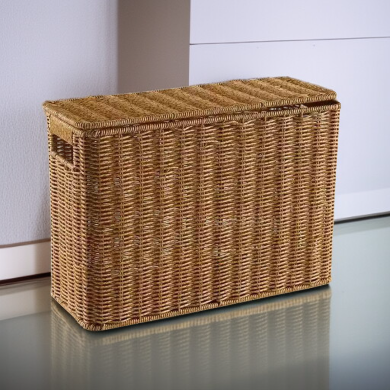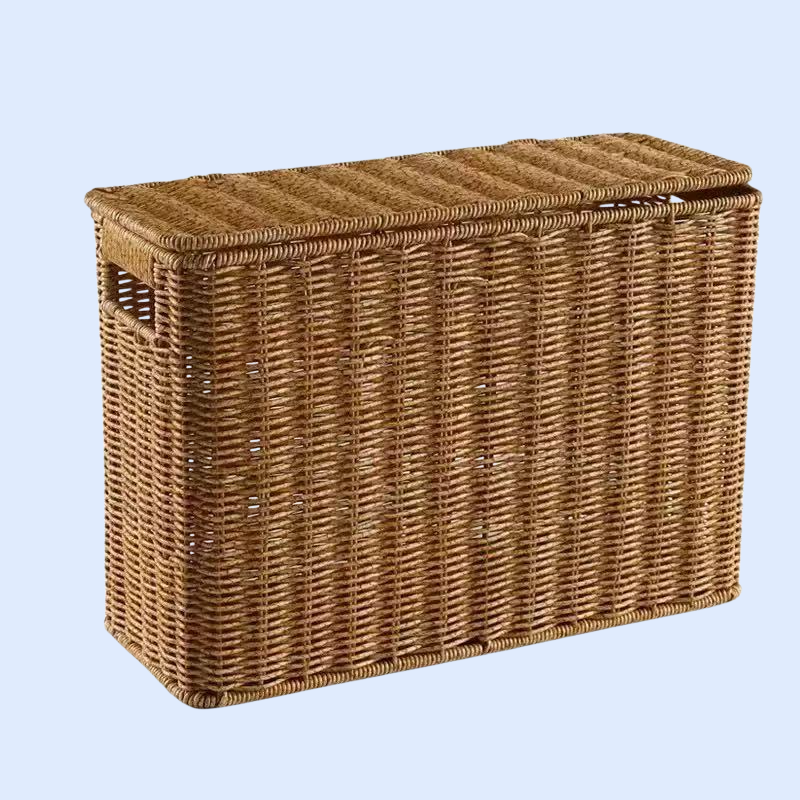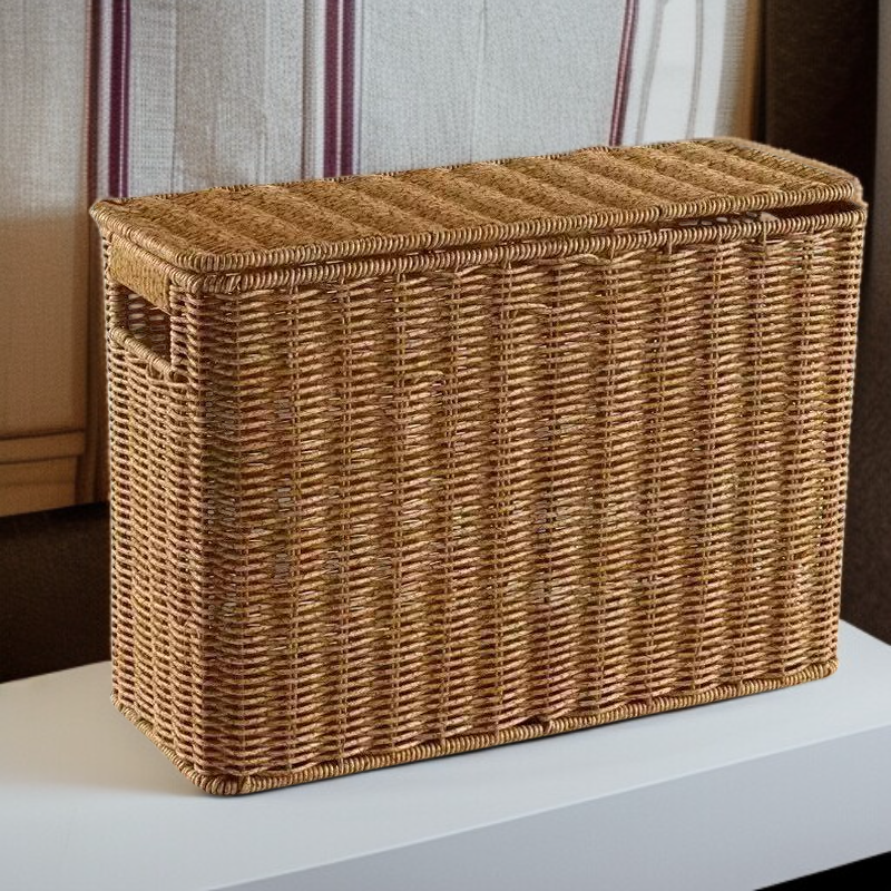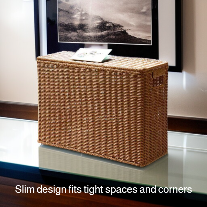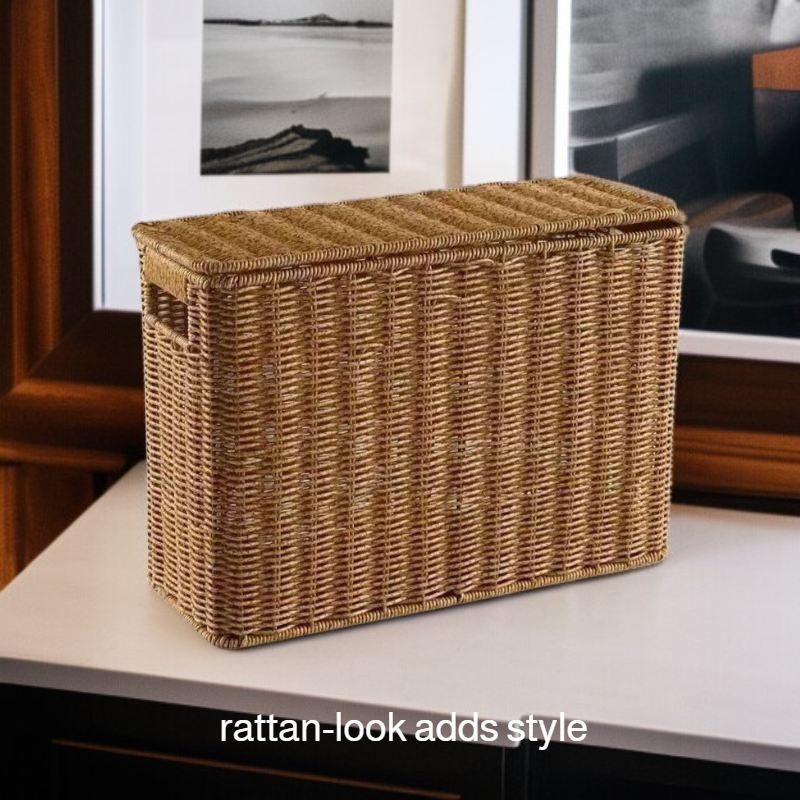 Slim Rattan-Look Lidded Organizer Bin for Tight Spaces and Corners