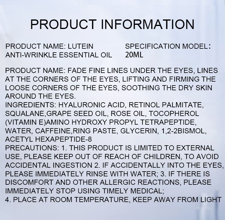 Lutein Anti-Wrinkle Essential Oil – visible improvement in under-eye fine lines in 7 days, and look 10 years younger in 14 days!