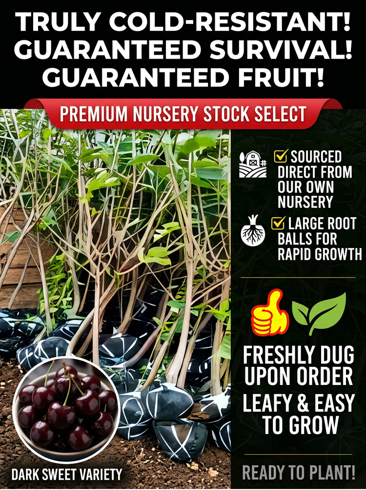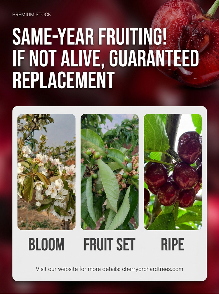 🍒 Enjoy Premium Bing Cherries at Home! Self-pollinating, bears fruit even with just one tree! Huge, sweet, top-quality fruit! Full refund if the tree doesn’t survive!